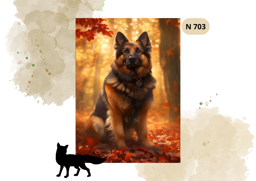 To haft, który łączy w sobie siłę i lojalność psa z nastrojową atmosferą jesiennego spaceru. Idealny dla miłośników owczarków niemieckich oraz osób, które kochają ciepłe, sezonowe pejzaże 🍁🐾.